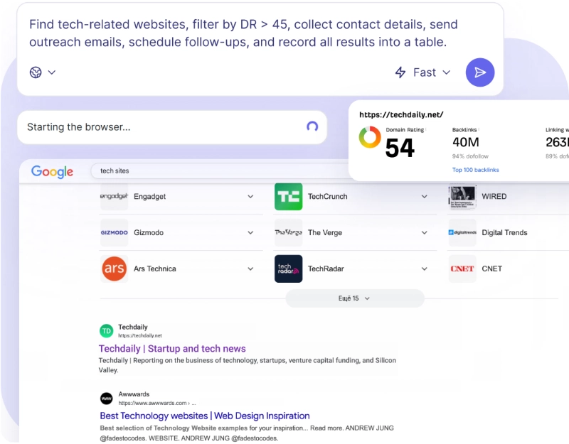 Find prospects, run outreach, and track results - in Nextbrowser